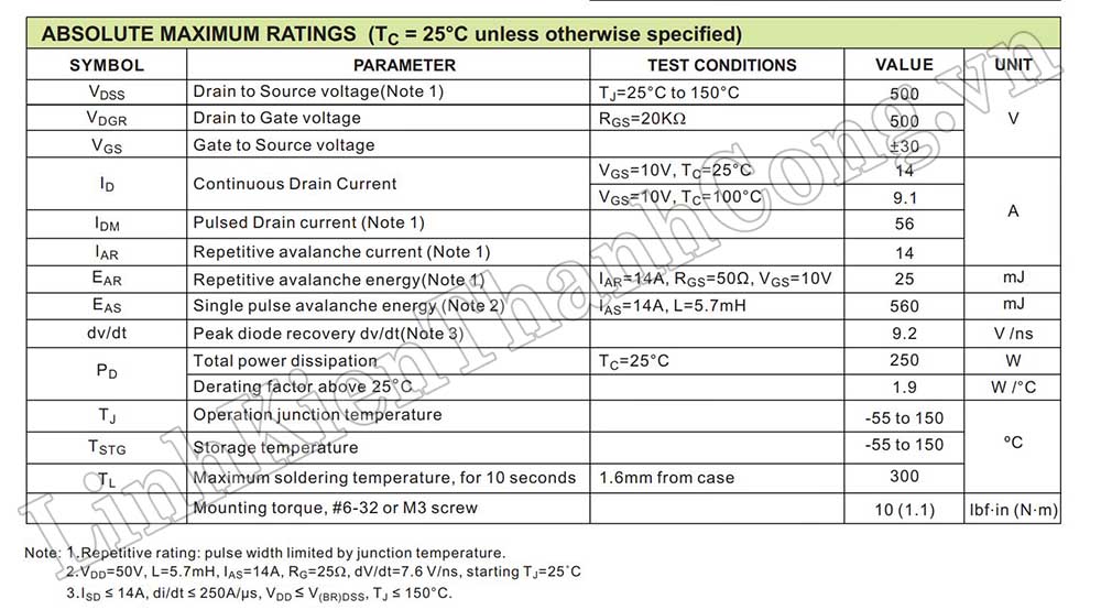 - Phân loại: MOSFET N-CH (kênh N)