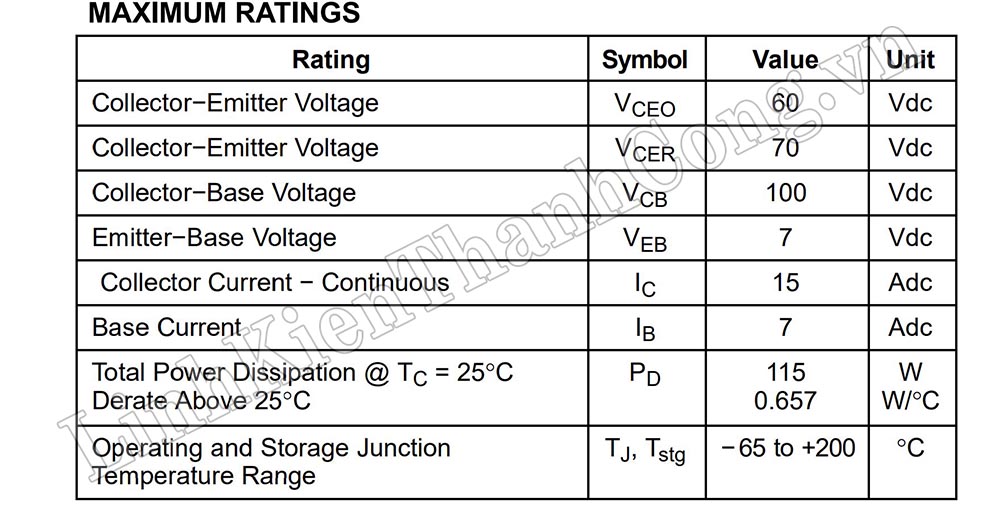 2N3055 Transistor NPN 15A100V TO-3 CRC Đen (Tháo Máy)