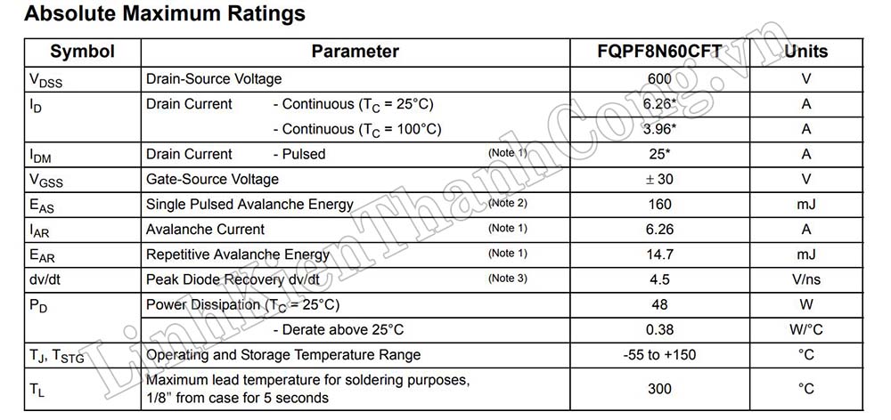 8N60 FQPF8N60C MOSFET N-CH 8A 600V TO220F