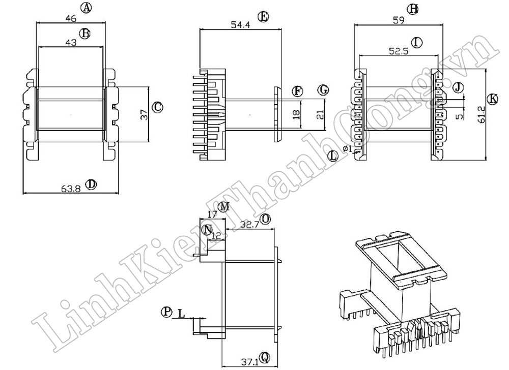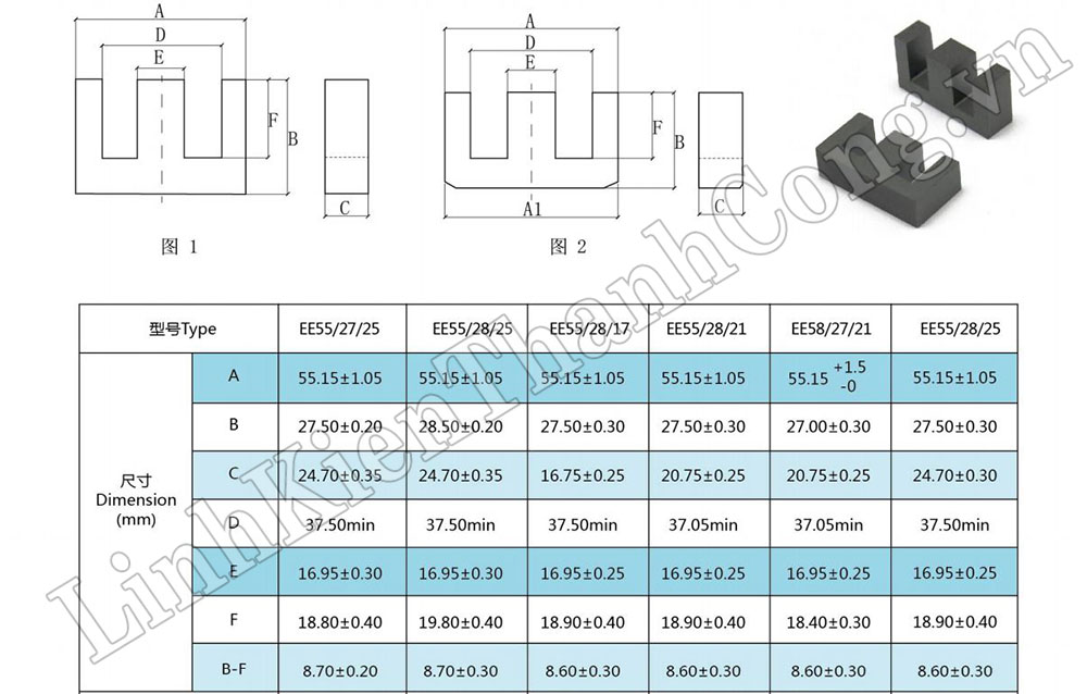 - Hình dạng lõi Ferrit: Vuông