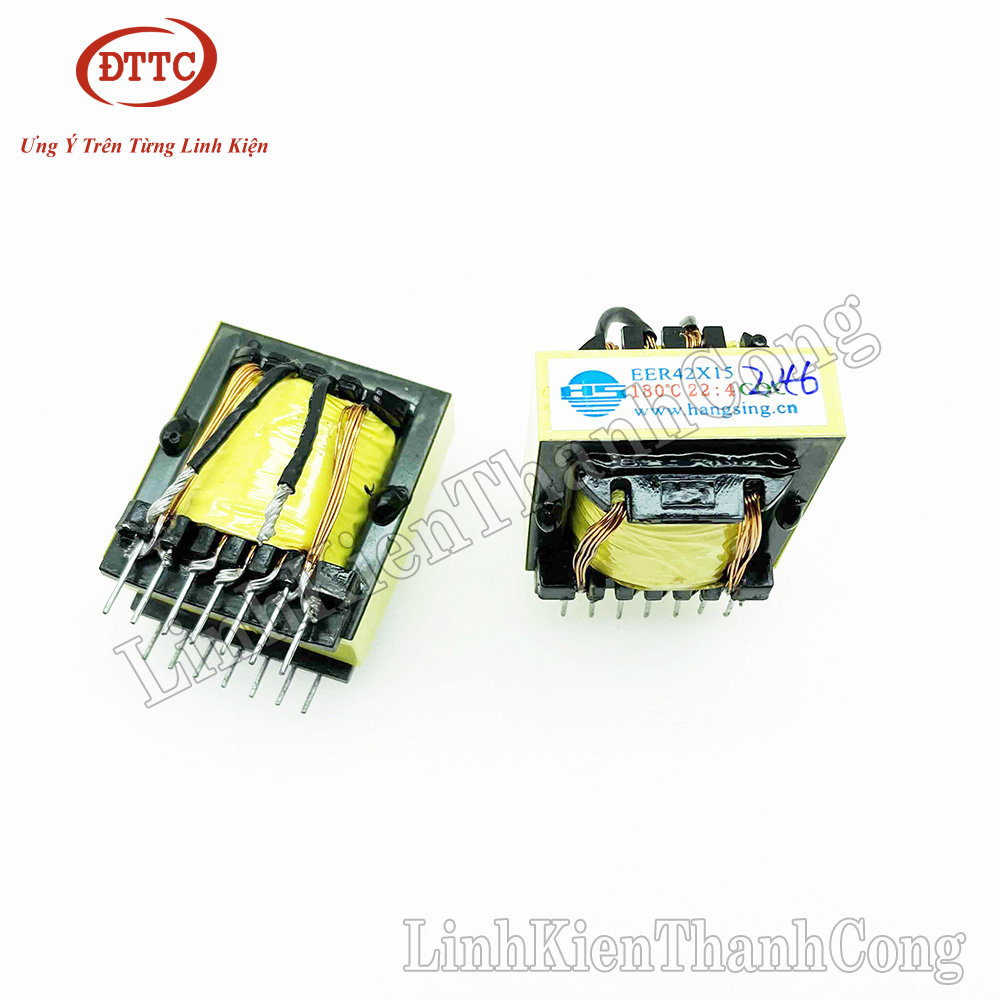 - Biến Áp Máy Hàn EER43x15 (Tỉ số 22:4) là loại biến áp xung công suất cao, được thiết kế chuyên dụng cho mạch nguồn máy hàn điện tử, nguồn xung công suất vừa đến lớn (SMPS). Sản phẩm sử dụng lõi từ EER43x15 chất lượng cao, có đặc tính tổn hao thấp, chịu tần số cao, giúp truyền năng lượng ổn định và hiệu quả cao trong các ứng dụng nguồn chuyển mạch.