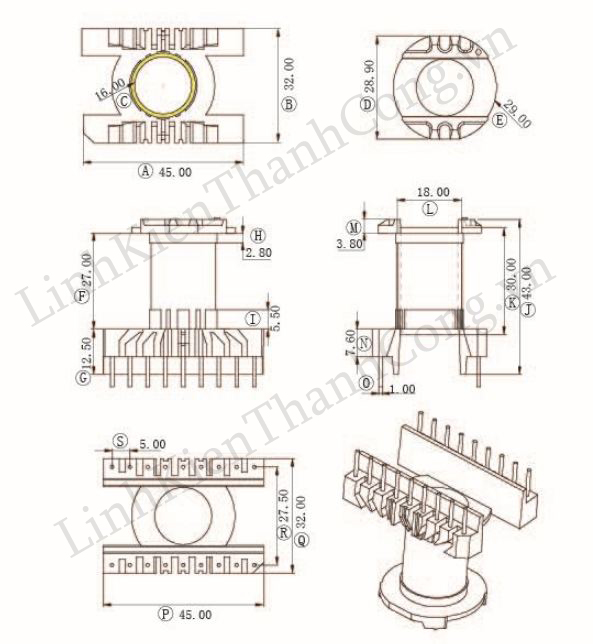 - Gồm: Khuôn nhựa (bobin) + Lõi Ferrit