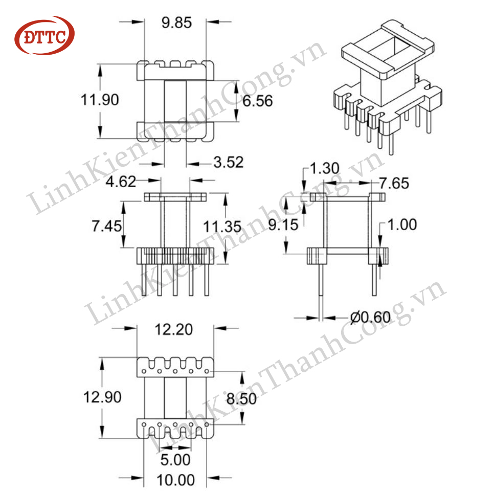 - Số chân của khuôn nhựa: 10 chân (2 hàng, mỗi hàng 5 chân)