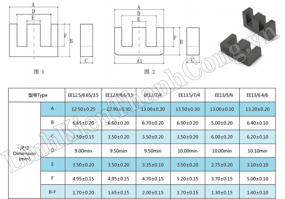 - Gồm: Khuôn nhựa (bobin) + Lõi Ferrit