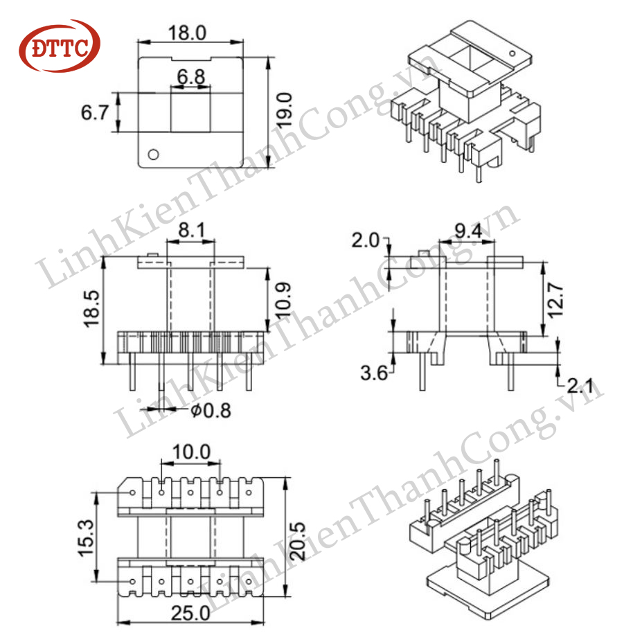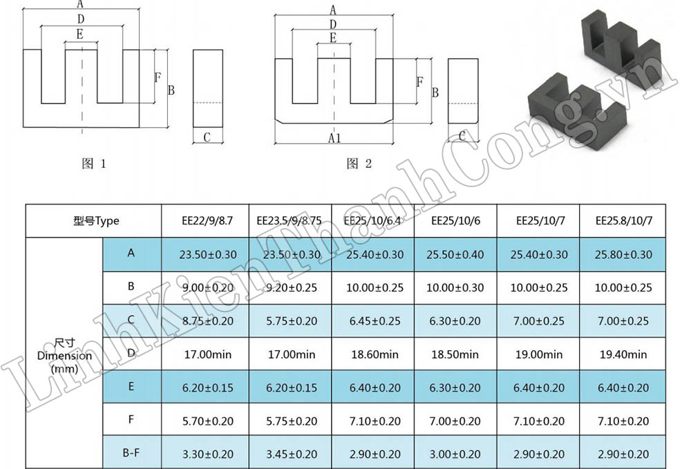 - Gồm: Khuôn nhựa (bobin) + Lõi Ferrit