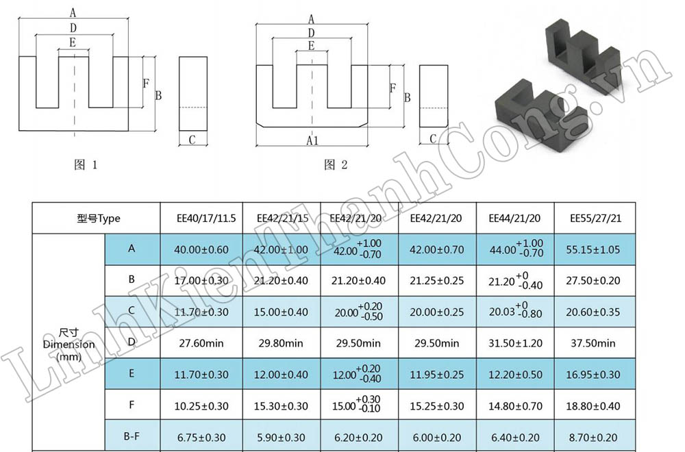- Gồm: Khuôn nhựa (bobin) + Lõi Ferrit