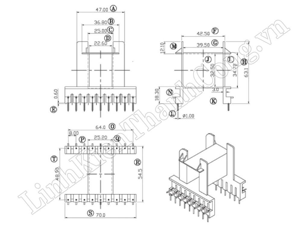 - Số chân của khuôn nhựa: 18 chân (2 hàng, mỗi hàng 9 chân)