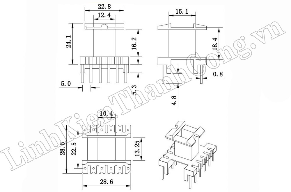 - Số chân của khuôn nhựa: 12 chân (2 hàng, mỗi hàng 6 chân)
