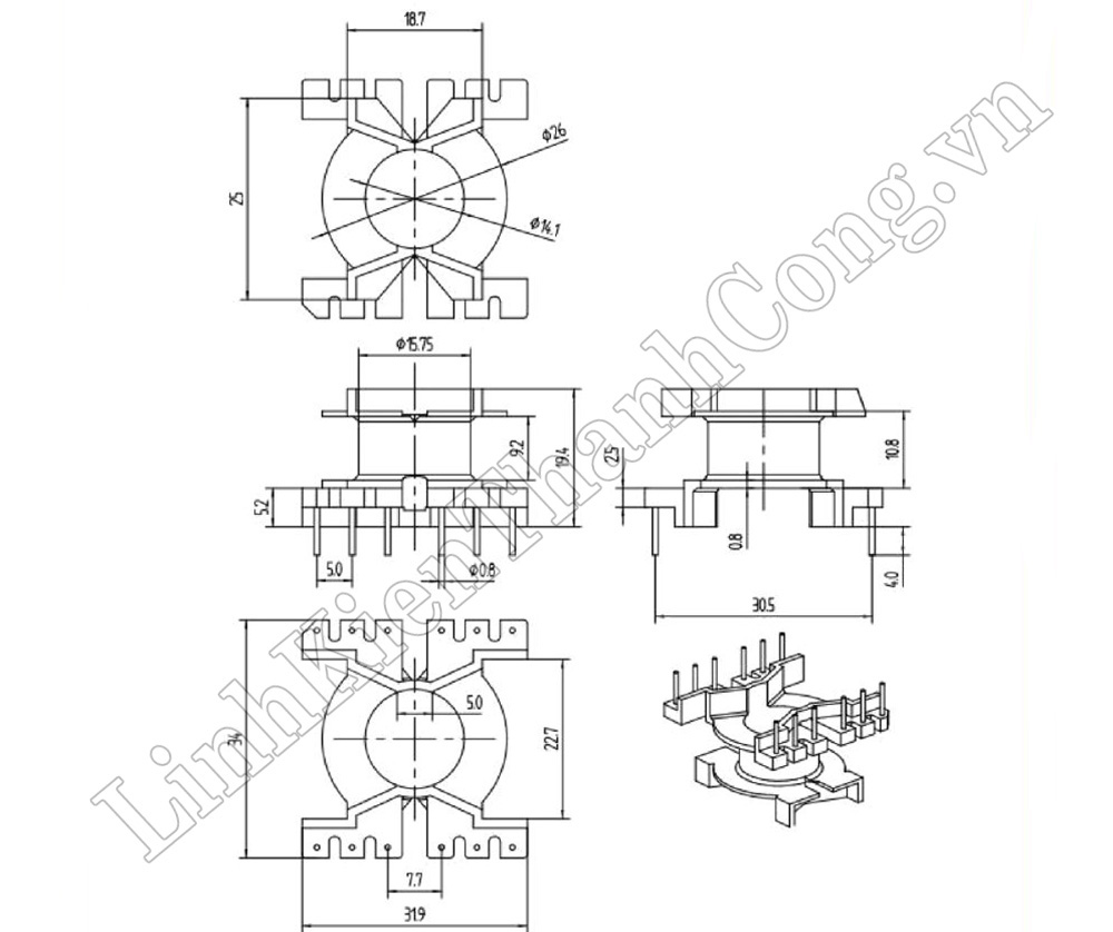 - Gồm: Khuôn nhựa (bobin) + Lõi Ferrit