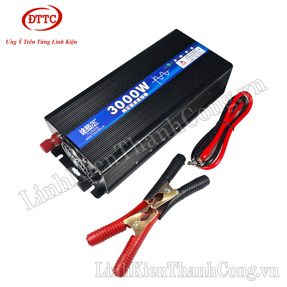 - Bộ Kích Điện Inverter Sin Chuẩn 12V Lên 220VAC 3000W là sản phẩm có chức năng tạo ra điện áp xoay chiều 220VAC từ điện áp 1 chiều 12VDC, với dạng sóng đầu ra là sóng hình sin chuẩn.