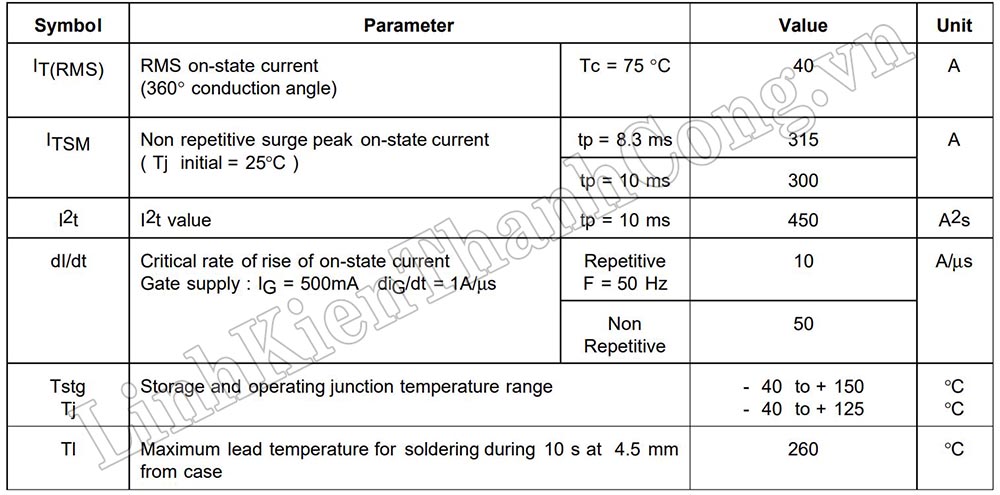 - Dòng điện cực đại: 40A