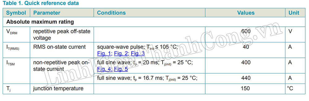 - Hoạt động trong môi trường: - 40 °C đến 125°C