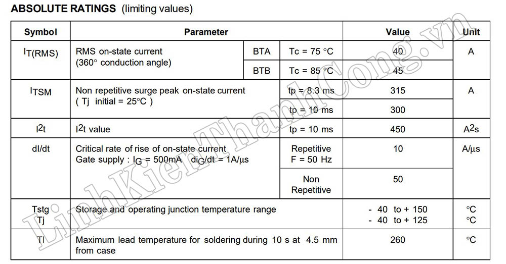 BTA41-700B TRIAC 40A 700V TO-3P