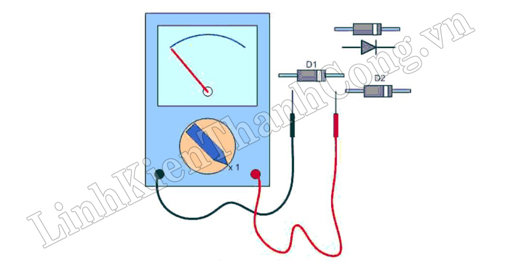 - Chỉnh thang đo đồng hồ ở thang x 1Ω , đặt hai que đo của đồng hồ VOM vào hai đầu của diode. Sẽ có các trường hợp xảy ra như sau: