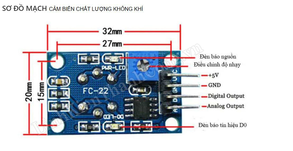- Điện áp của heater: 5V ± 0.1 AC/DC