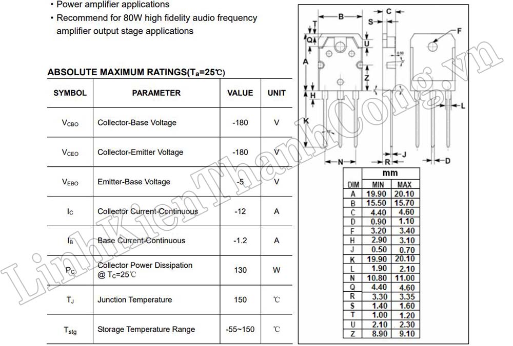 - Kiểu chân cắm: TO-3P