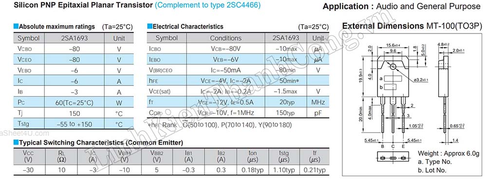 - Tham khảo Datasheet A1693 >>Tại Đây<<