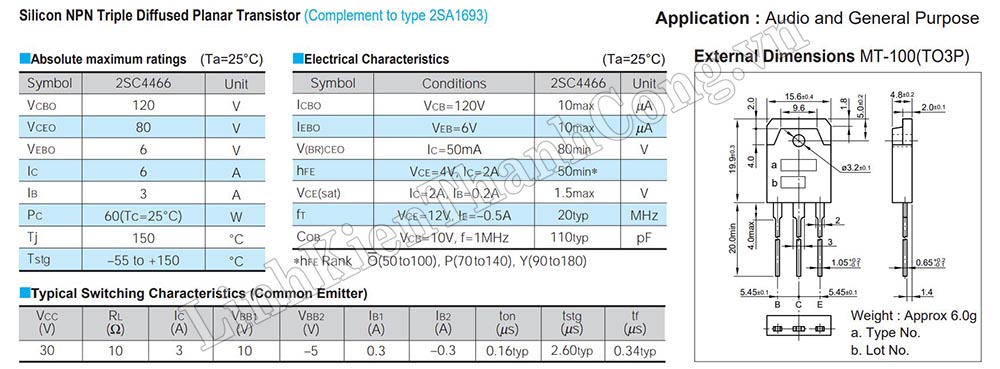 - Tham khảo Datasheet C4466 >>Tại Đây<<