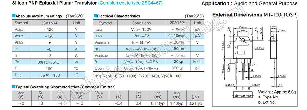 - Tham khảo Datasheet A1694 >>Tại Đây<<