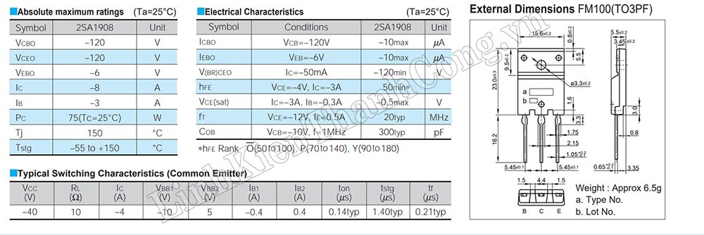 - Tham khảo Datasheet A1908 >>Tại Đây<<