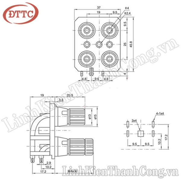 - Số chân kết nối: 4P (2 hàng)