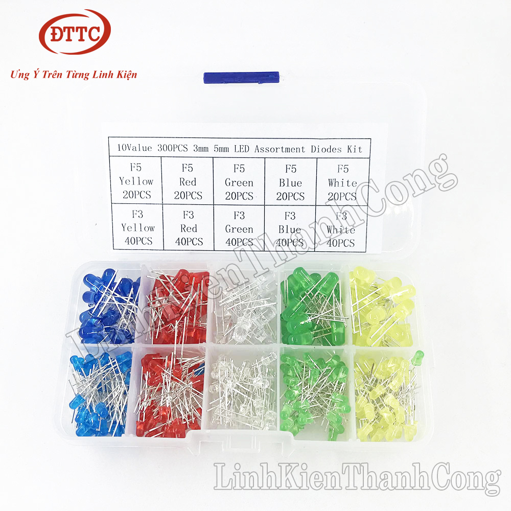 - COMBO 10 Loại Led 3mm/5mm 5 màu (300 cái): là bộ sản phẩm chuyên dụng, đa dạng giúp cho chúng ta thuận tiện trong quá trình làm việc.