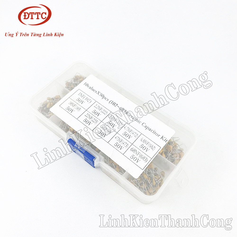 - Bao gồm 10 Loại Tụ Gốm 1nF-68nF (500 chiếc)