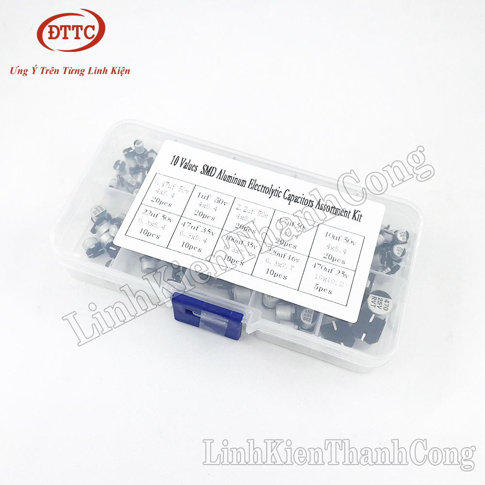 - COMBO 10 Loại Tụ Nhôm 0.47uF - 470uF (145 cái): là bộ sản phẩm chuyên dụng, đa dạng giúp cho chúng ta thuận tiện trong quá trình làm việc.