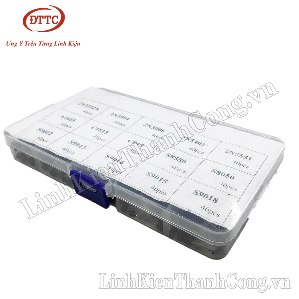 - Loại: 15 loại (mỗi loại 40 chiếc): 2N2222, 2N3904, 2N3906, 2N5401, 2N5551, A1015, C1815, C945, S8050, S8550, S9012, S9013, S9014, S9015, S9018