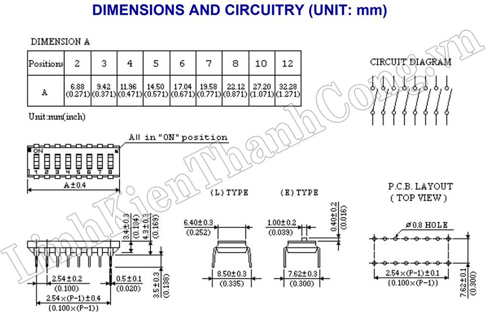 - Khoảng cách giữa 2 chân: 2.54mm