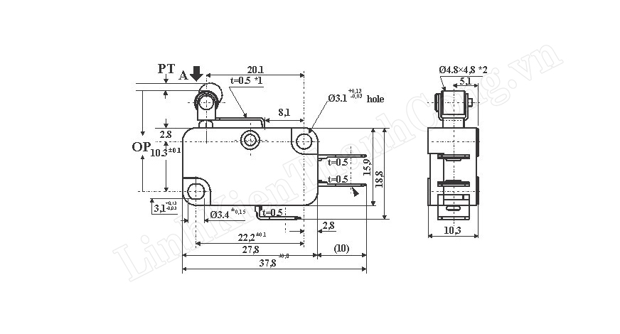 - Công tắc hành trình được sử dụng để điều khiển các thiết bị điện bằng cách cho phép hoặc ngăn dòng điện qua mạch. Nó có 3 đầu nối. Đầu vào nguồn điện được gọi là chân COM, được sử dụng để nối công tắc với nguồn điện. Hai đầu còn lại là tiếp điểm thường mở (NO) và tiếp điểm thường đóng ( NC). NO có chức năng đóng mạch lại không cho dòng điện chạy từ nguồn đến các thiết bị điện cho đến khi các thiết bị điều khiển của công tắc hành trình được kích hoạt. Và NC cho phép dòng điện đi vào các thiết bị cho đến khi thiết bị điều khiển của công tắc được kích hoạt.