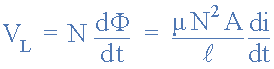 - Từ trường biến thiên theo thời gian tạo ra một điện áp tỷ lệ thuận với tốc độ thay đổi của dòng điện tạo ra nó với giá trị dương cho thấy sự gia tăng của emf (Độ tự cảm) và giá trị âm biểu thị sự giảm emf (Độ tự cảm). Phương trình liên quan đến điện áp, dòng điện và điện cảm tự cảm này có thể được tìm thấy bằng cách thay thế (μN^2).A / l bằng L biểu thị hằng số tỷ lệ gọi là: Độ tự cảm của cuộn dây.