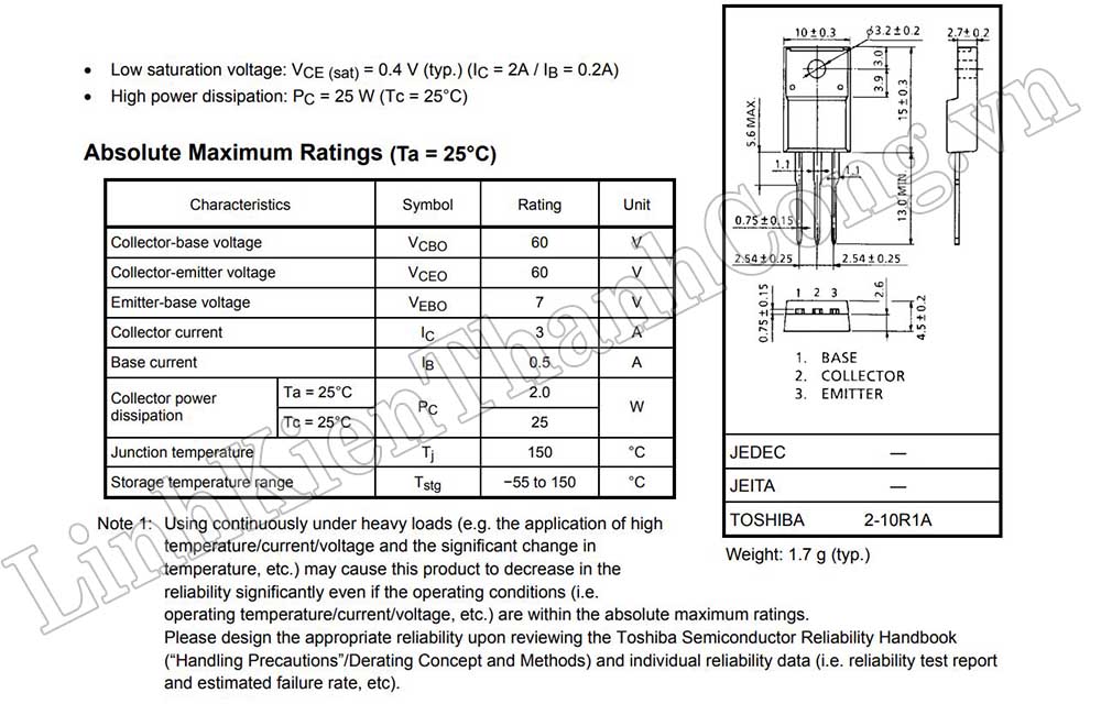 D2012 Transistor NPN 3A 60V Tháo Máy