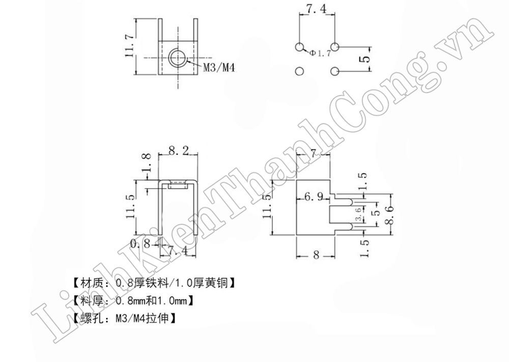 Terminal Hàn Mạch 4 Chân Lỗ M3