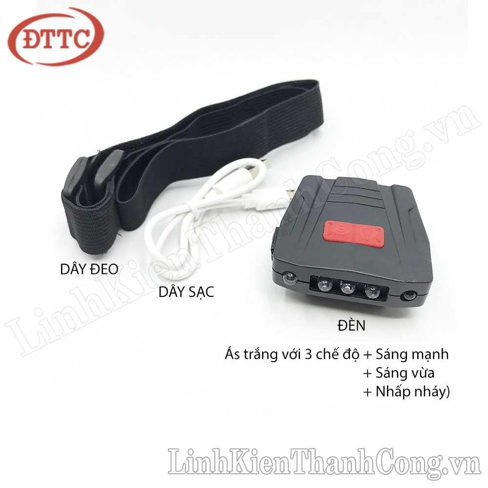 - Gồm: Đèn + Dây sạc + Dây đeo