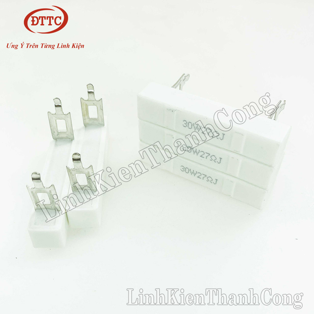 - Điện Trở Sứ 27R 30W Chân Dẹt là loại điện trở công suất cao, có lớp vỏ bằng sứ chịu nhiệt, bên trong là dây điện trở quấn trên lõi gốm giúp tản nhiệt tốt, hoạt động ổn định trong thời gian dài. Với giá trị điện trở 27R và công suất chịu tải 30W, sản phẩm phù hợp cho các ứng dụng điện tử, nguồn xung, mạch lọc, tải giả hoặc giảm dòng khởi động.