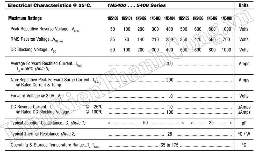 - Loại sản phẩm: DIODE CHỈNH LƯU