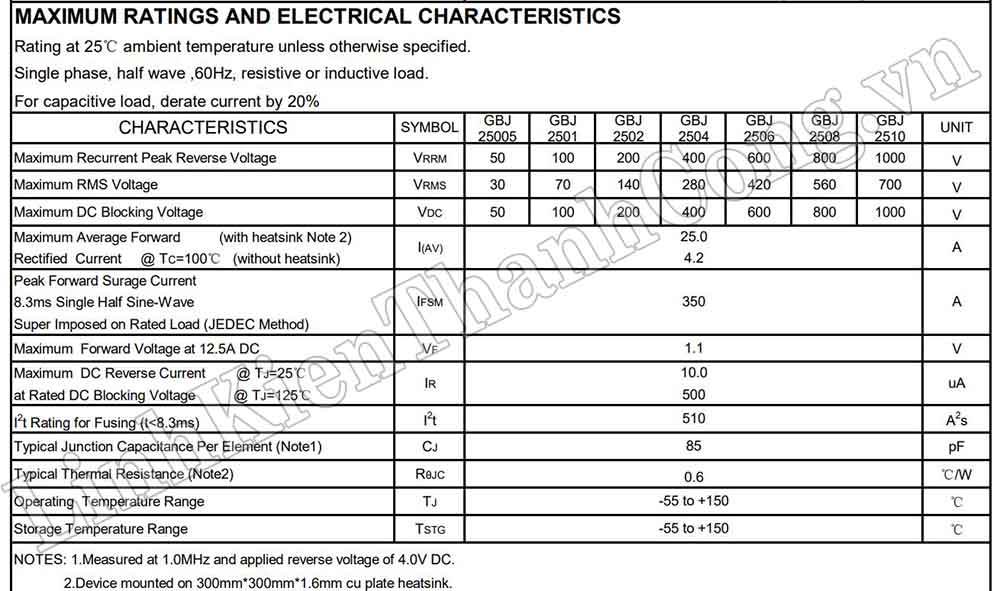 - Diode cầu GBJ2510 là linh kiện quan trọng trong mạch điện, nó có vai trò chỉnh lưu dòng xoay chiều thành dòng một chiều.
