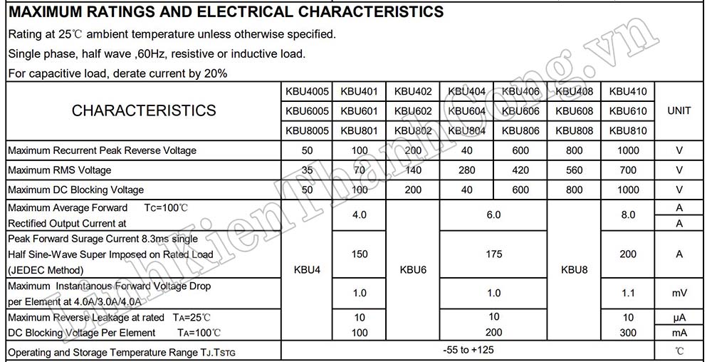 - Kí hiệu: KBU610