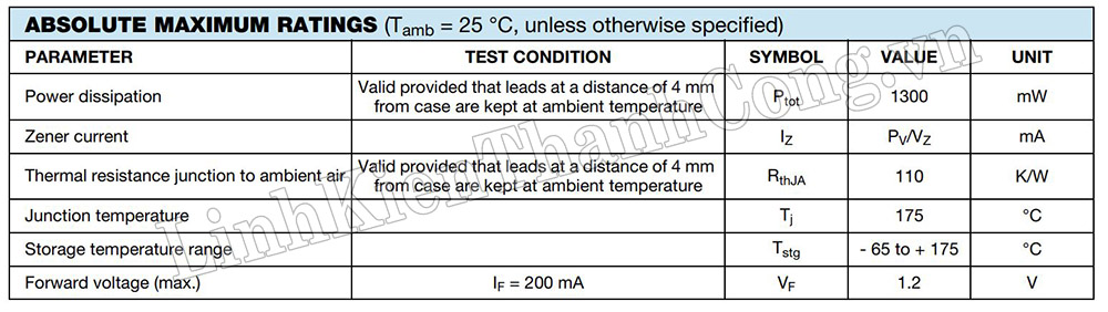 - Loại sản phẩm: Diode Zener