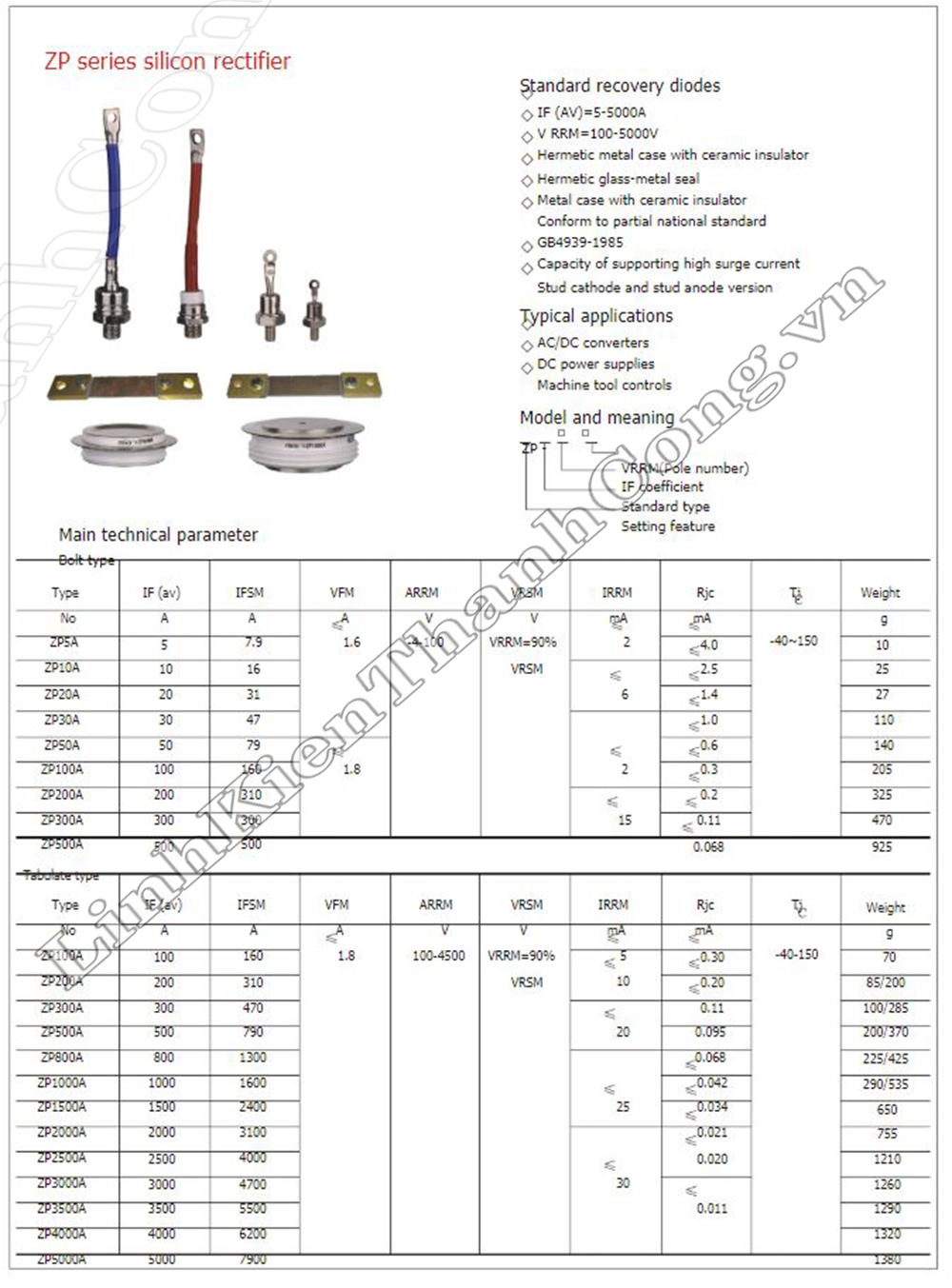 - Loại sản phẩm: Diode CHỈNH LƯU