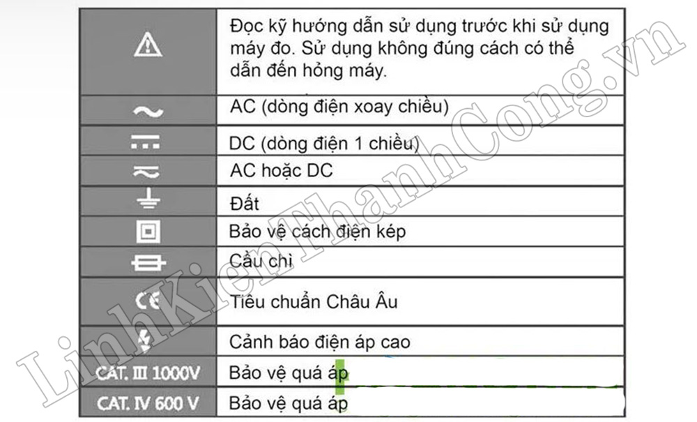 - Điện áp DC: 600mV / 6V / 60V / 600V / 1000V
