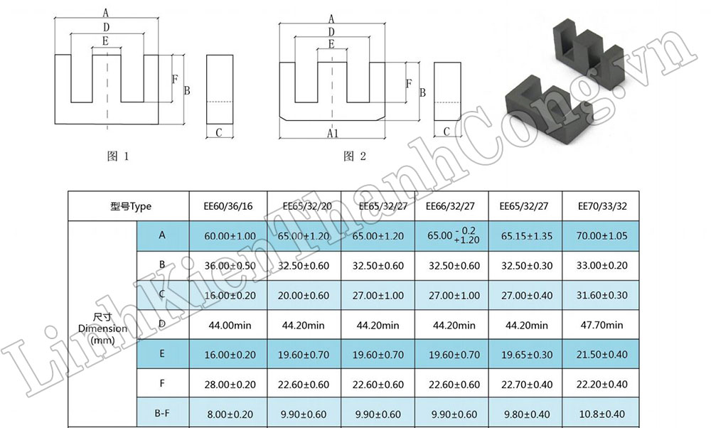 - Chất liệu lõi Ferrit: MnZn