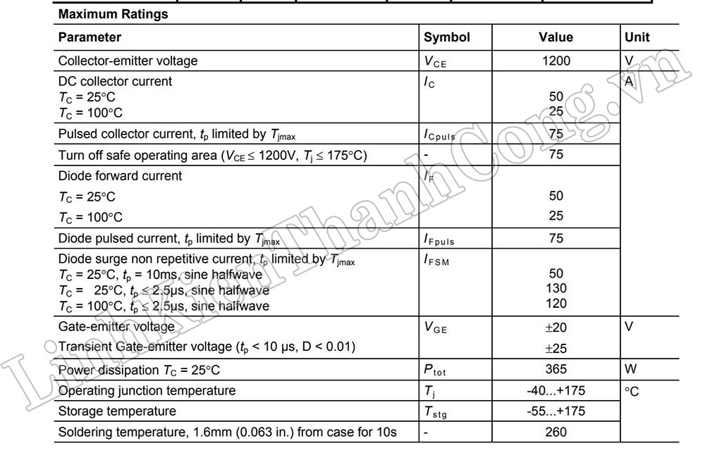 - Điện áp tối đa: 1200V