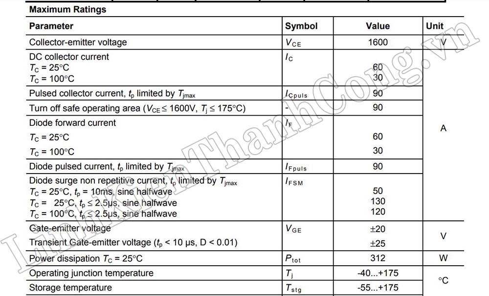 - Điện áp tối đa: 1600V