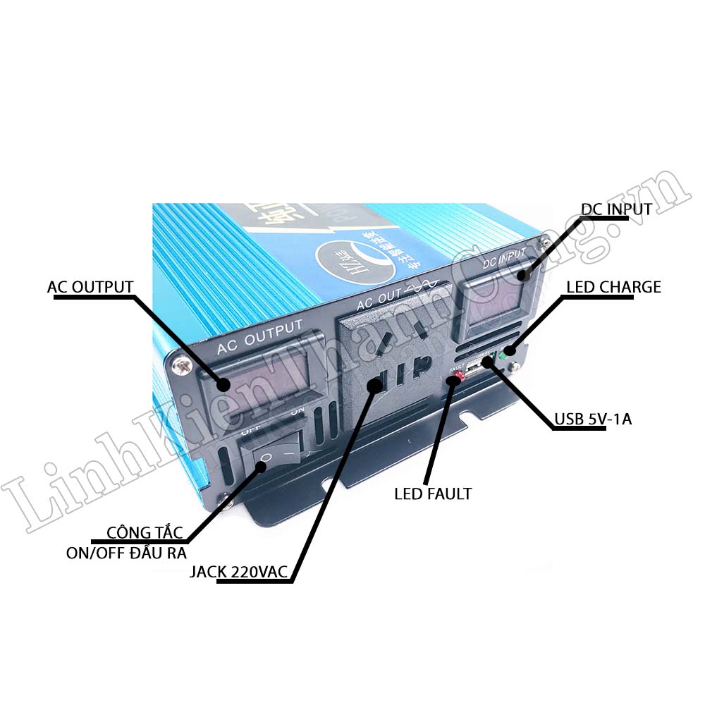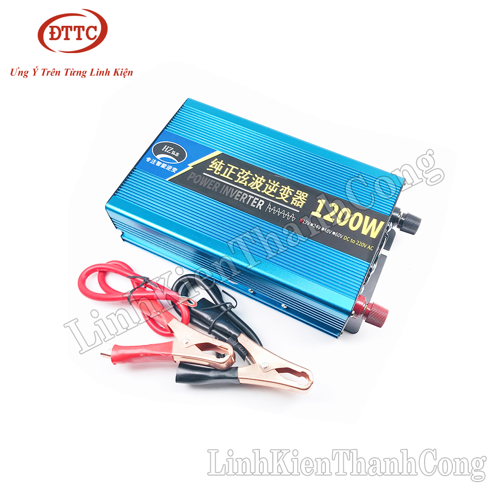 - Inverter sóng sin chuẩn 12V 1200W là sản phẩm có chức năng tạo ra điện áp xoay chiều 220VAC từ điện áp 1 chiều 12VDC, với dạng sóng đầu ra là sóng hình sin chuẩn.