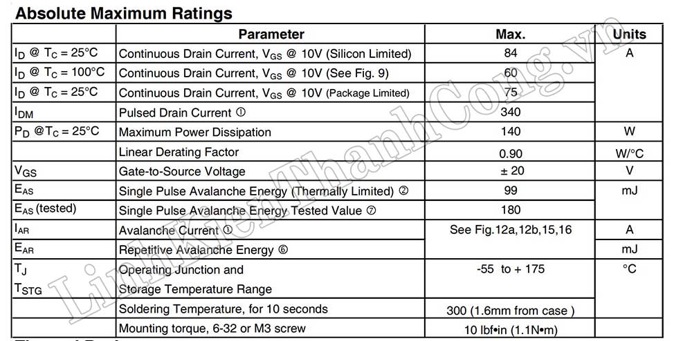 IRF1010E MOSFET N-CH 75A 60V TO-220 (Tháo Máy Lưng Đồng)