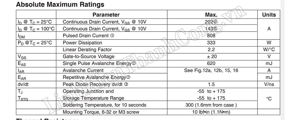 IRF1404 MOSFET N-CH 202A 40V TO220 (Tháo Máy Lưng Đồng)