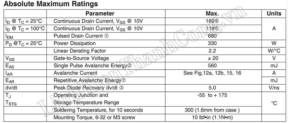IRF1405 MOSFET N-CH 169A 55V tháo máy