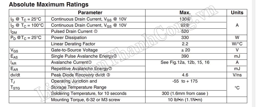 IRF1407 MOSFET N-CH 130A 75V tháo máy